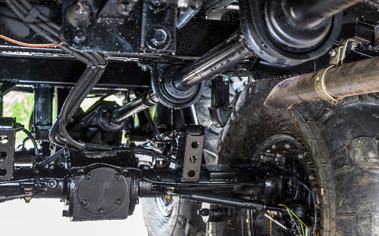 В подвеске применены стандартные амортизаторы от «УАЗа», пружины фирмы «Фобос» спереди и усиленные рессоры от «ГАЗели» сзади. Клиренс, по сравнению с редукторными «УАЗами», увеличен на 50 мм., а ход колёс составляет 300 мм.