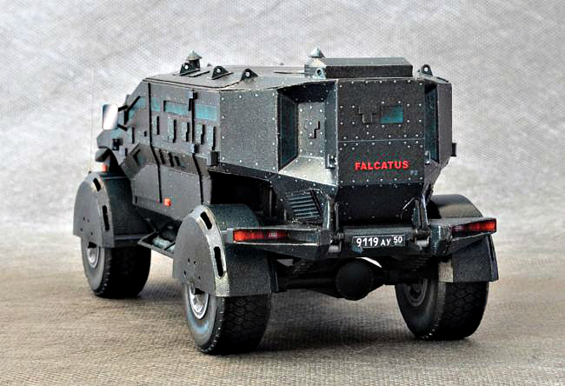 На полигоне в подмосковном Дмитрове начались испытания нового бронированного автомобиля, предназначенного для сил специального назначения ФСБ. Машина получила название «Фалькатус» — в Античную эпоху так назывался кавалерийский меч, применяемый в армии Древнего Рима.