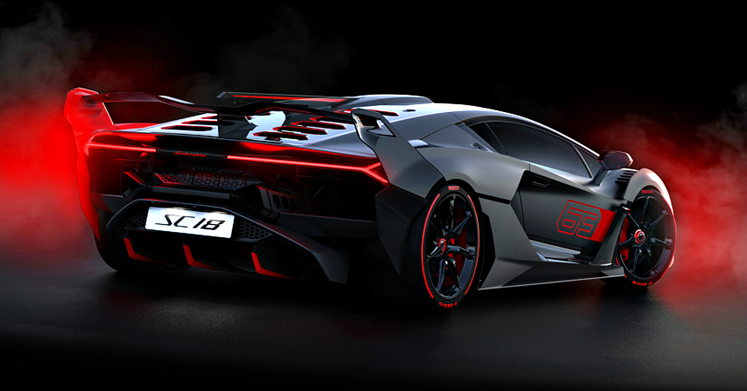 Дизайн кормы Lamborghini SC18 уникален и ничем не напоминает модели фирмы. У машины оригинальное антикрыло с массивными пилонами, а также новые задние фонари в виде узких светодиодных полос.