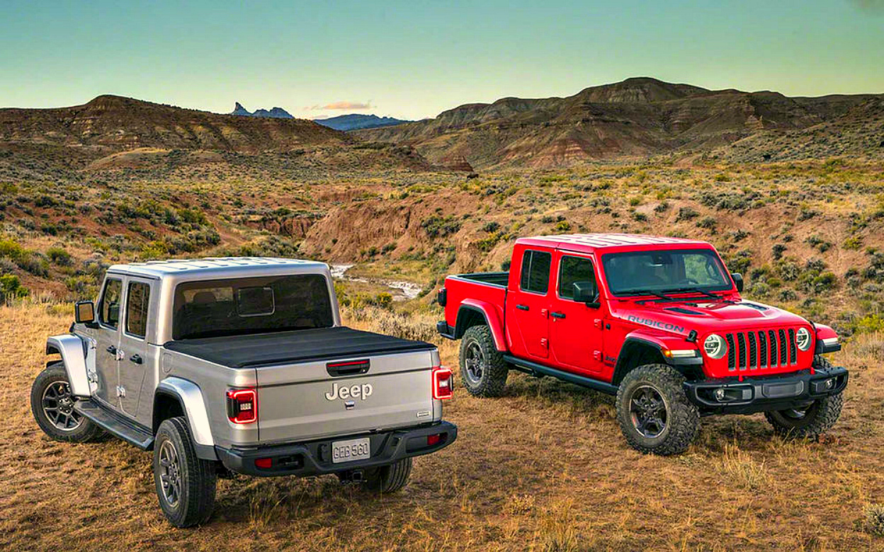 Jeep Gladiator будет предлагаться в 4-х комплектациях: Sport, Sport S, Overland и Rubicon. Последняя традиционно предназначена для серьёзного бездорожья: она оснащена 20-дюймовыми колёсами с внедорожными шинами диаметром 33 дюйма, стальными силовыми бамперами с возможностью установки лебедки и вездеходным обвесом, а её клиренс увеличен до 282 мм., что значительно увеличило углы въезда и съезда.