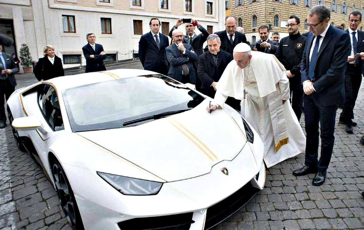Глава римско-католической церкви выставил для розыгрыша в благотворительной лотерее, проводимой онлайн-платформой Omaze, свой гиперкар Lamborghini Huracan, который фирма подарила ему в ноябре 2017 г.