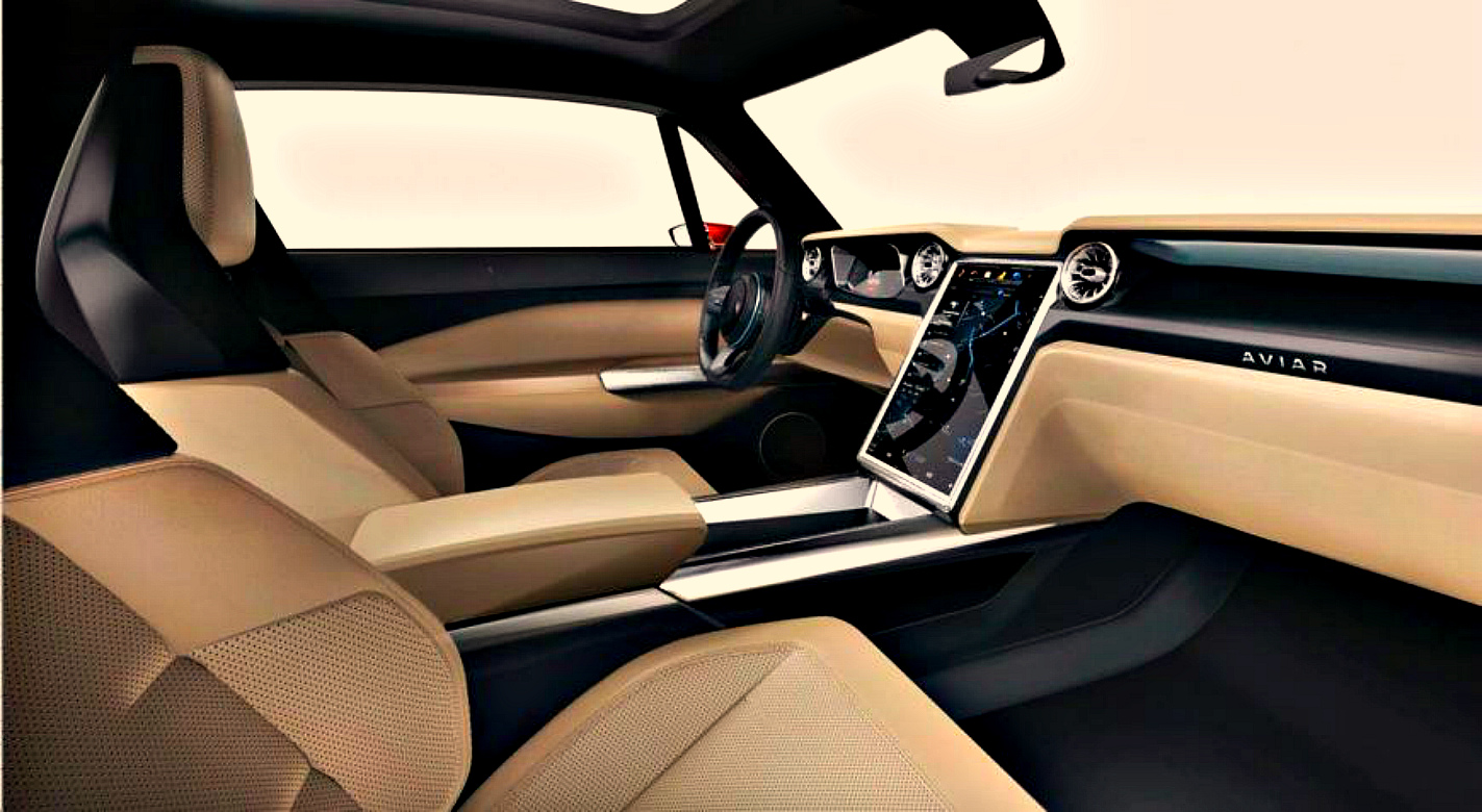 Изменений в салоне больше. При его оформлении конструкторы явно ориентировались на Tesla — центральная консоль, например, полностью занята 17-дюймовым сенсорным экраном, а «приборка» — виртуальная. А вот отделка интерьера — в ретро-стиле: из эко-кожи 2-х цветов.