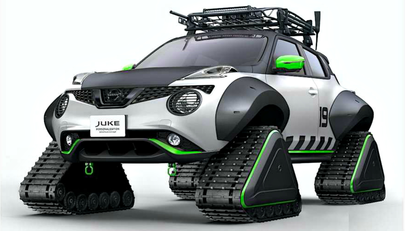 Машина получила название Juke Personalization Adventure Concept. Её главная «фишка» — гусеничные тележки вместо колёс (подобные тем, что идут в качестве опции для некоторых мощных квадроциклов).
