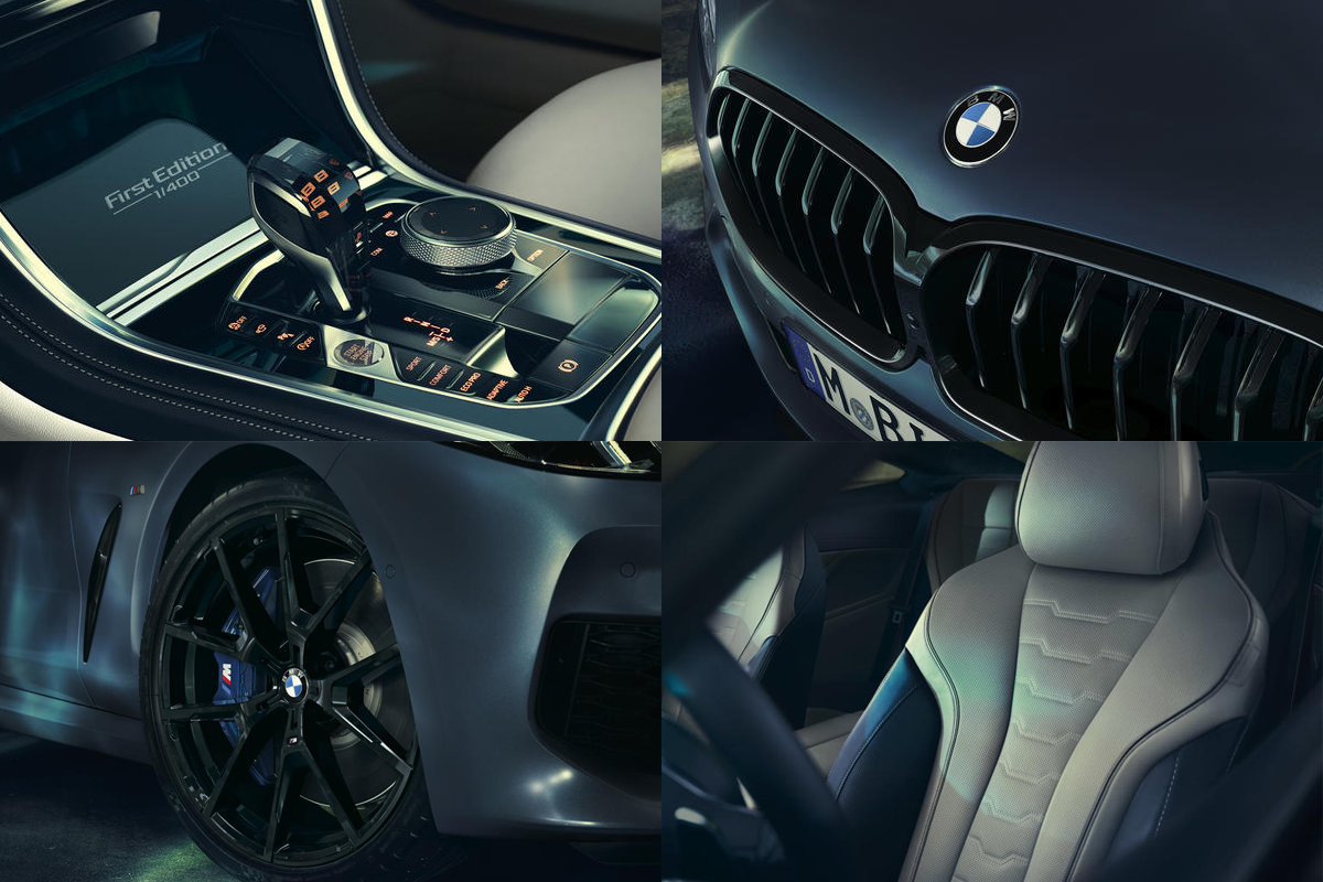 Специальная версия, названная First Edition, сделана на базе самой мощной модификации — BMW M850i xDrive Coupe. От стандартного автомобиля она отличается, во-первых, эксклюзивной окраской Frozen Barcelona Blue, разработанной отделом BMW Individual.