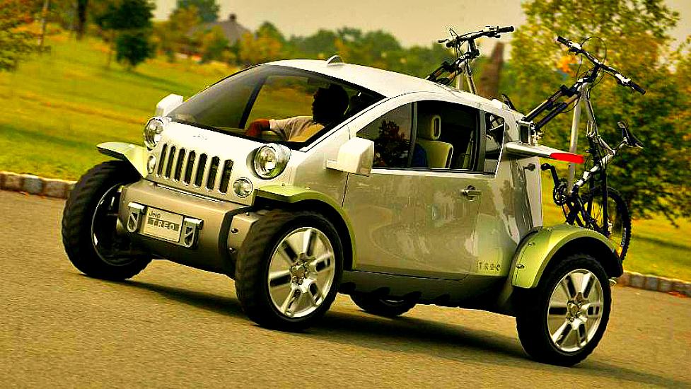 В связи с этим, в автомобильные СМИ немедленно просочилась информация, что малыш будет создан на базе концептуального электромобиля Jeep Treo, который был показан ещё в октябре 2003 г. на автосалоне в Токио.