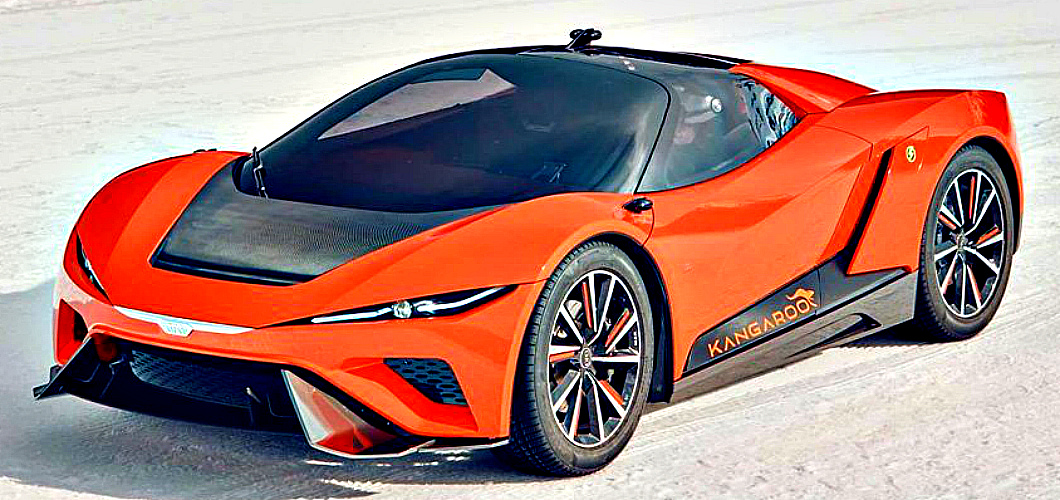 Электромобиль, названный Kangaroo, имеет колёсную формулу 4х4. Он оснащён 2-мя электромоторами суммарной мощностью 490 л. с. Максимальная скорость этой свирепой «Кенги» ограничена электроникой на отметке в 250 км/ч, а разгон до 100 км/ч занимает всего 3,8 сек. Запас хода на полной зарядке - 450 км.