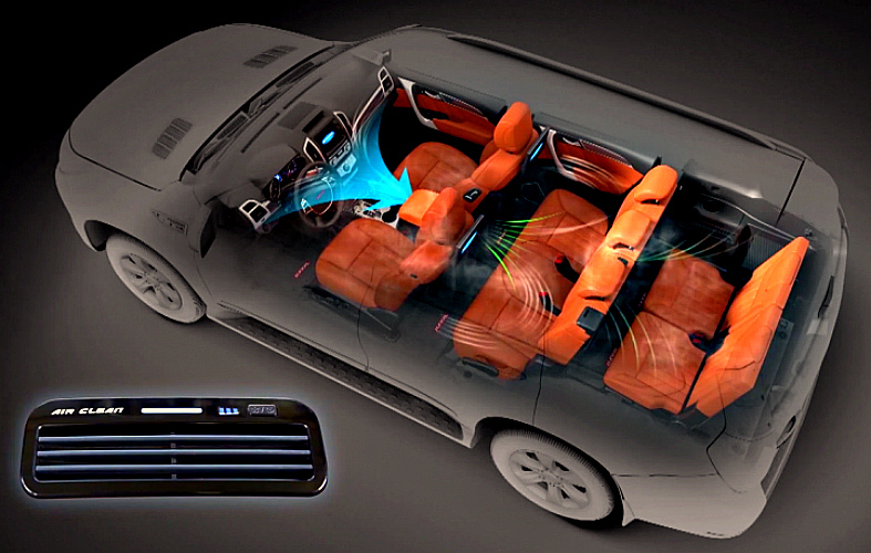 Кроме того, автомобиль оснащён интеллектуальной системой очистки воздуха в салоне, в которую входят фильтр с активированным углем, ионизатор воздуха и датчик пыли. Сиденье 3-го ряда (внедорожник 7-местный) складывается с помощью электропривода. Водителю помогают системы удержания машины в полосе движения, контроля «слепых зон», предотвращения фронтальных столкновений