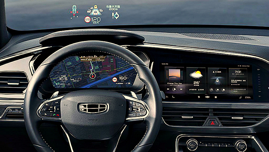 Салон Geely Xingyue щеголяет виртуальной «приборкой», проекционным экраном, премиальной аудиосистемой BOSE с 12-ю динамиками, беспроводной зарядкой для гаджетов и обшивкой из кожи Nappa.