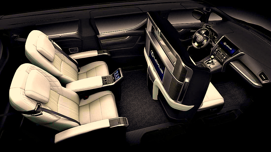 Есть отличия и в салоне: Lexus LM — 4-местный. Вместо заднего дивана в нём установлена пара роскошных кожаных кресел с электрорегулировками, разделённых подлокотником с сенсорной панелью.