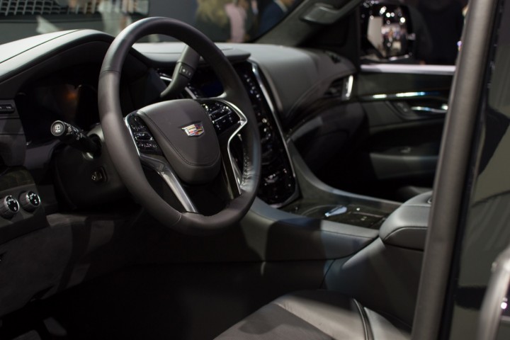 Все сиденья имеют отделку из кожи, для третьего ряда опционально доступны совмещенные сидения в виде "дивана". При этом третий ряд складывается, в результате чего объём багажника увеличивается до 2172 литров. Размеры Cadillac Escalade впечатляю - при колесной базе в 2946 мм длина автомобиля составляет 5179 мм, а ширина - 2061 мм.