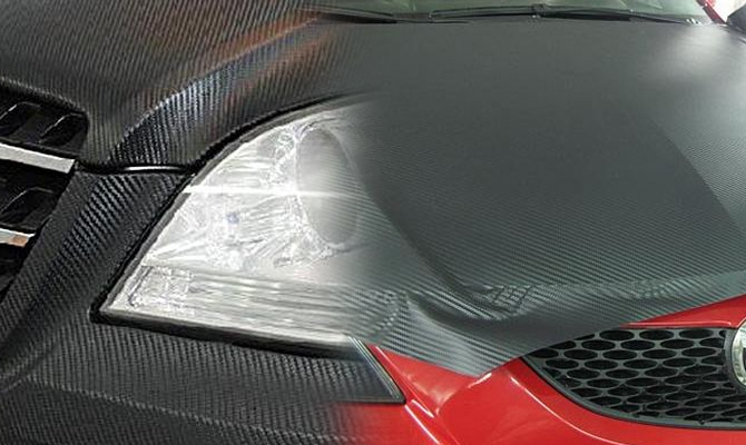 - Карбоновая. Одна из наиболее популярных пленок, особенно среди владельцев спортивных машин. Благодаря применению особой технологии, имитирующей трехмерное изображение, машина смотрится по-настоящему богато и стильно.