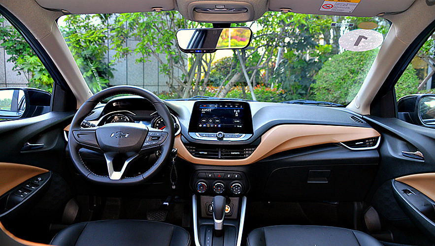 В салоне Chevrolet Onix Redline появились спортивные передние кресла с развитой боковой поддержкой и интегрированными подголовниками, 3-спицевой руль с плоским внизу ободом, а также современная мультимедийная система с «парящим» тачскрином. Обшивка салона сделана 2-цветной, а её материалы стали более качественными.