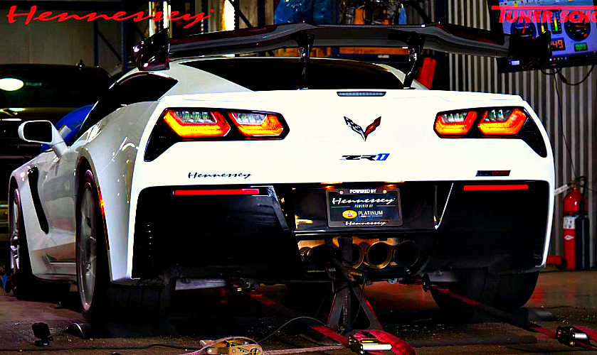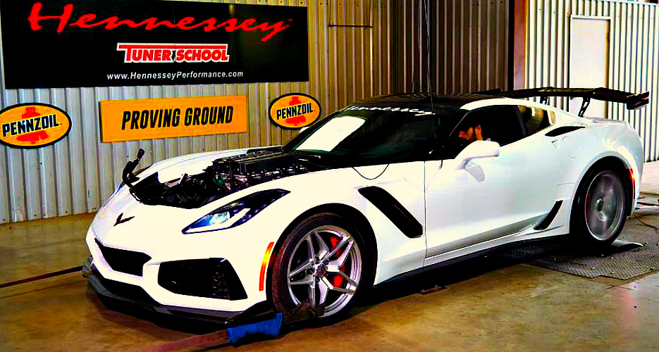 На этот раз объектом их творчества стало спортивное купе Chevrolet Corvette в самой мощной версии ZR1. И без того не слабый автомобиль оснастили фирменным пакетом моторного тюнинга HPE1000, после чего штатный турбированный бензомотор LT5 показал на динамометрическом стенде результат в 1 200 л. с.