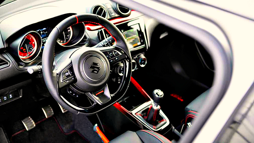 Салон Suzuki Swift Sport Katana украсят декоративные элементы, в числе которых будут изображения иероглифов «Катана» и шильдики с серийными номерами автомобилей в этой версии исполнения.