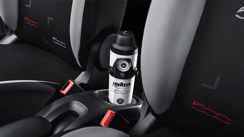 Появившийся в 2012 году микровэн Fiat 500L опционально мог оснащаться встроенной кофеваркой Lavazza 500 — в комплект входили также 2 стакана для кофе, держатель для ложек и контейнер с сахаром.
