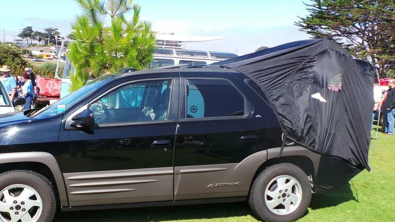 Позиционировавшийся как авто для путешествий Pontiac Aztek оснащался палаткой, прикрепляемой к задней части автомобиля. Внутри подразумевался ещё и надувной матрас — чтоб удобно было спать.