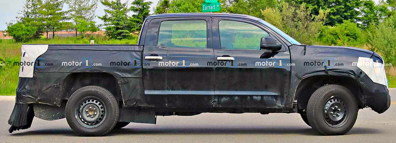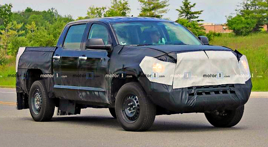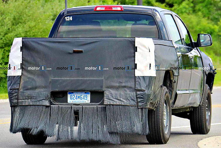 В американском штате Мичиган замечен увешанный маскировкой «мул» обновлённого пикапа Toyota Tundra. Видимо, это не что иное, как гибридная версия автомобиля.