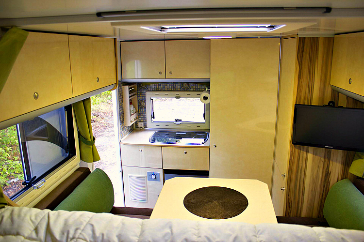 Вместо грузовой платформы установлен жилой модуль из стеклопластика, оборудованный всем необходимым для бытовых нужд. Он выполнен в 2-х вариантах — с входом в кабину и без него.
