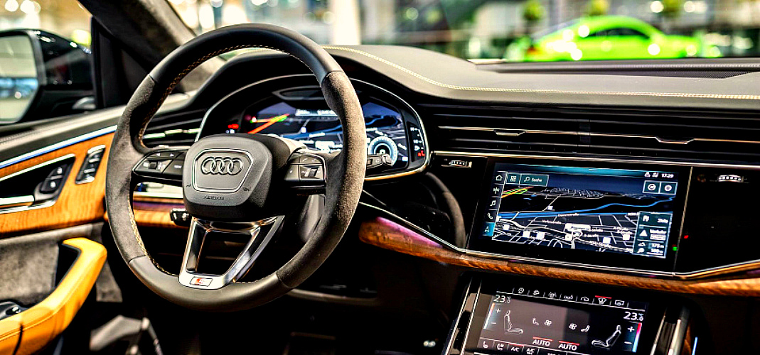 Основой для оформления салона стала комплектация Audi Excusive. Сиденья получили обшивку из премиальной кожи Havana оттенков Brown и Black с контрастной прострочкой белого цвета, а руль — обшивку из алькантары схожих оттенков.