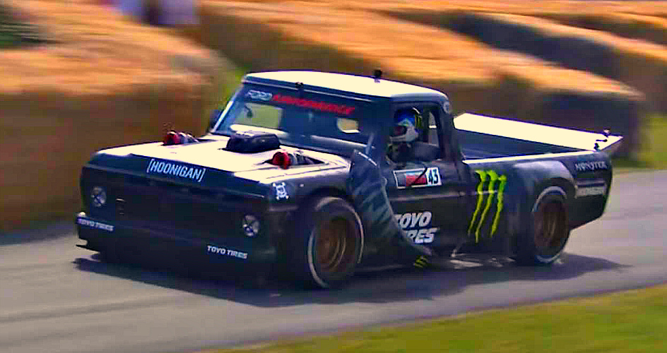 Кен Блок выступал на основательно переделанном старом пикапе Ford F-150. Автомобиль, получивший название Hoonitruck, оснащён мотором EcoBoost V6 объёмом в 3,5 л. и мощностью в 914 л. с. Это немного дефорсированный движок гоночного Ford GT, предназначенного дл марафона «24 часа Ле-Мана».
