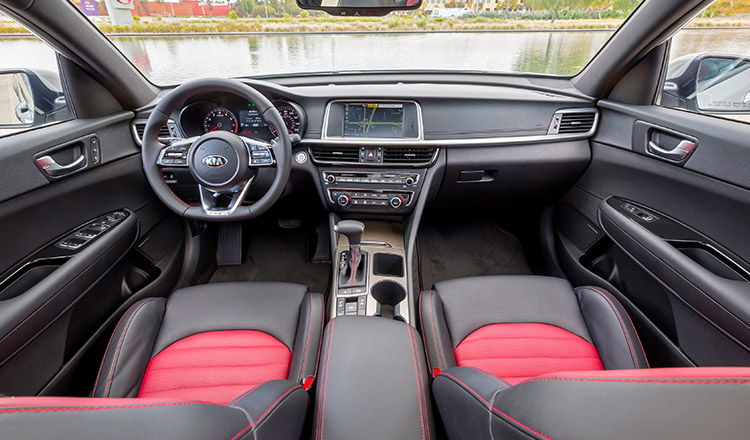 В салоне новой версии Kia Optima созданы все условия для комфортабельных поездок на любые расстояния и в сильную жару, и суровые морозы. Эргономичные кресла с регулировками, вентиляцией и обогревом (несколько температурных режимов), крупная приборная панель Supervision с цветным 4.3-дюймовым дисплеем, мультируль, просторный салон с раздельным климат-контролем – даже самые требовательные автовладельцы останутся довольны новой моделью Киа Оптима.