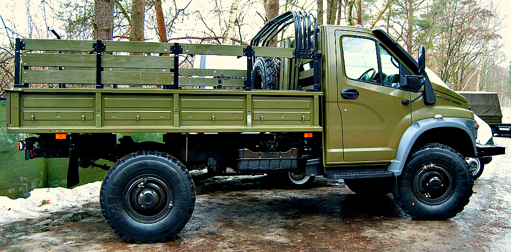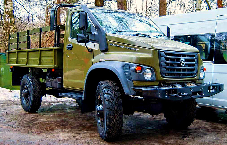 Интересно, что информация о новинке всюду сопровождается одними и теми же фото, где грузовик окрашен в защитный цвет, а его руль расположен справа. Видимо, «ГАЗ Садко NEXT» уже имеет и экспортную модификацию, предназначенную для чьей-то армии.