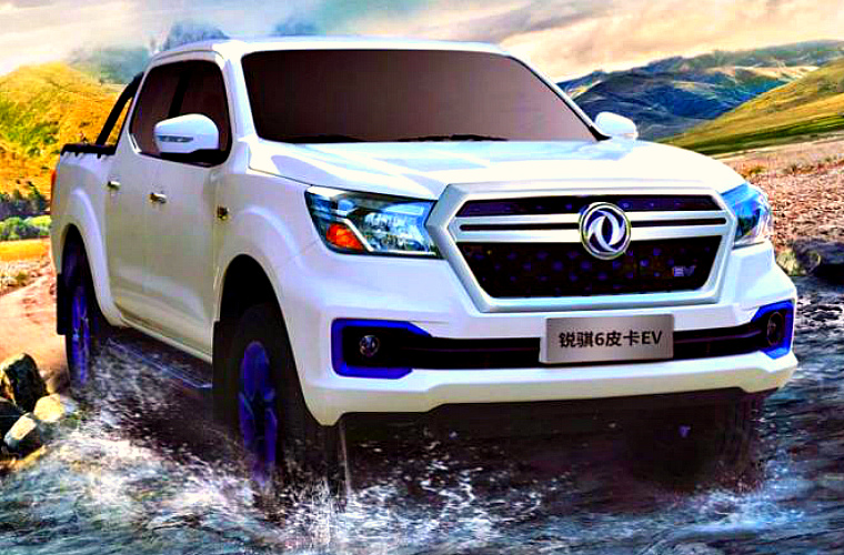 1-й из них, Dongfeng Ruijing 6 EV, сделан на базе легальной копии известного пикапа Nissan Navara, ставшего также основой для автомобилей Renault Alaskan и Mercedes-Benz X-Klasse. Заднеприводный Dongfeng Ruijing 6 EV оснащён электромотором мощностью в 163 л. с. и аккумулятором ёмкостью в 67,9 кВт/ч.