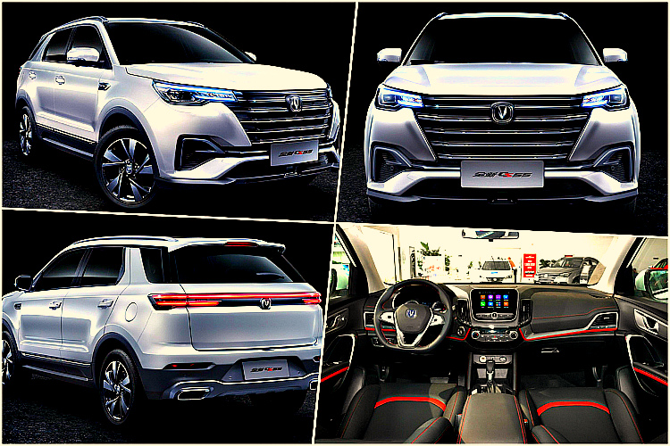 Changan CS55 получил массивную трапециевидную решётку радиатора, покрытую хромом, головную светодиодную оптику и задние фонари в виде тонких светодиодных полос.