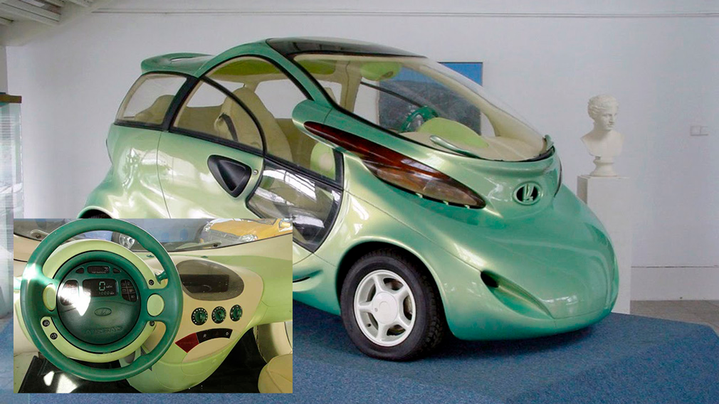 Это сейчас все носятся с электромобилями как с откровением. На самом деле, конечно, идея электрокаров довольна старая. Тот же «АвтоВАЗ» в 1998 году представил необычный для того времени концепт электромобиля с необычным дизайном. Особая «фишка» — открывающиеся против хода двери и оригинальный руль со встроенным щитком приборов и подушкой безопасности. Руль при этом при открытии двери поднимался, что облегчало посадку на место водителя.
