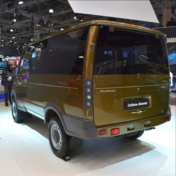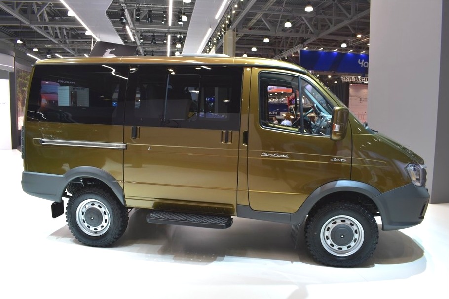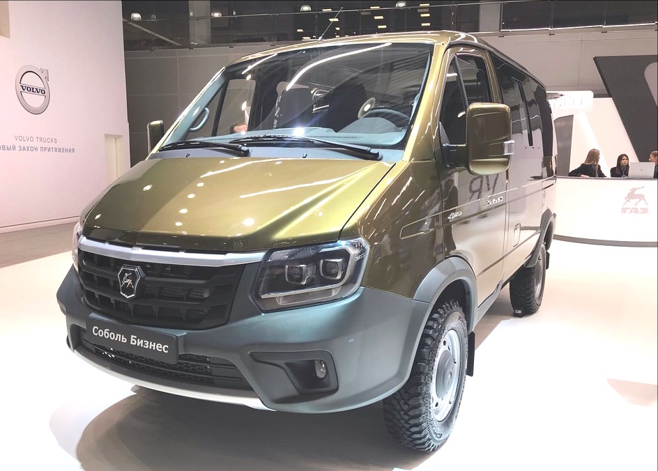 Среди её экспонатов — рестайлинговая версия полноприводного микроавтобуса «Соболь Бизнес» Горьковского автозавода. Передняя часть автомобиля сделана аналогичной моделям семейства «ГАЗель NEXT», а прочие детали кузова остались без изменений.