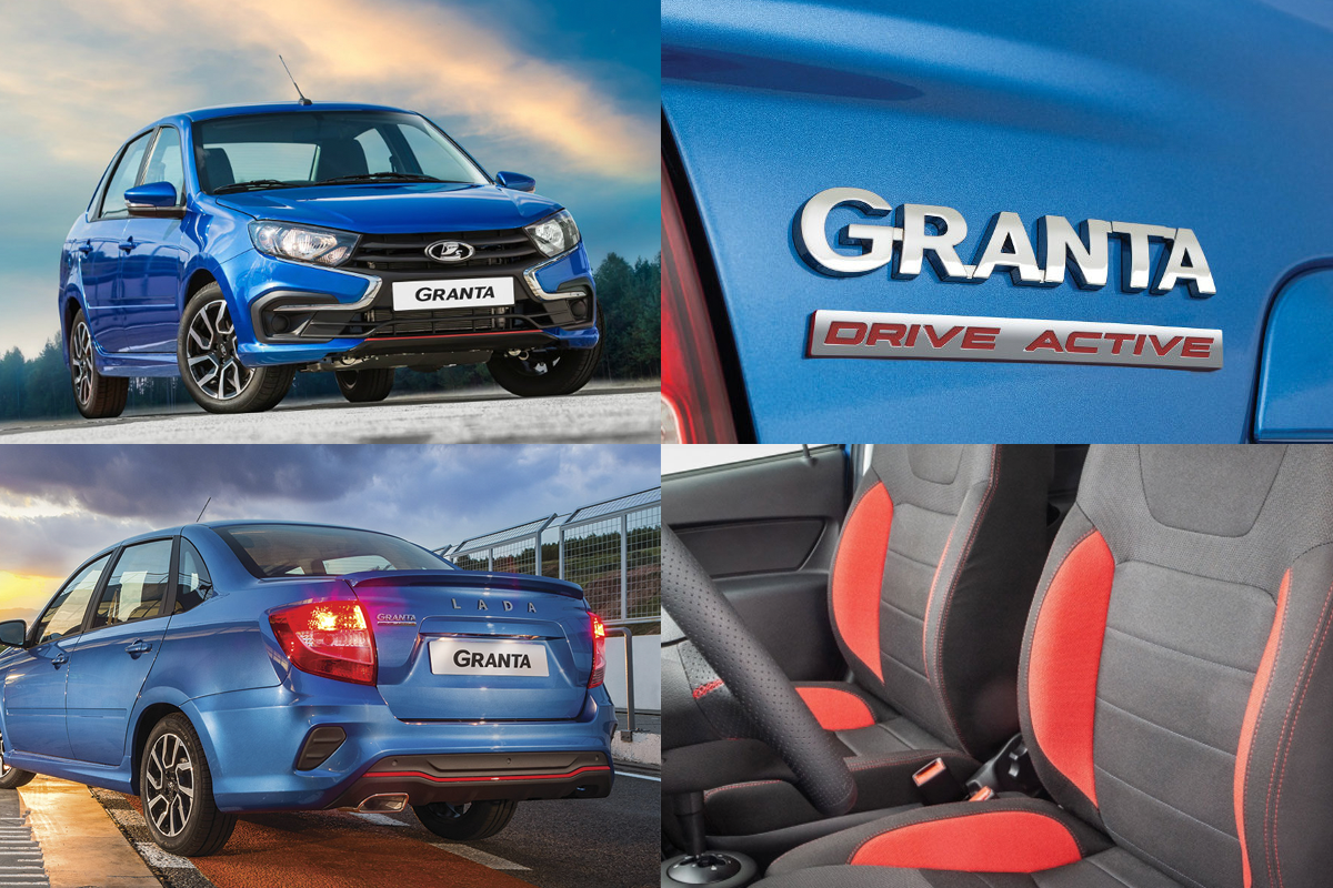 Lada Granta Drive Active получила аэродинамический обвес, подвеску со спортивными настройками, спортивные сиденья и 15-дюймовые колёса с алмазной полировкой. Мотор — 16-клапанный, объёмом в 1,6 л. и мощностью в 106 л. с.