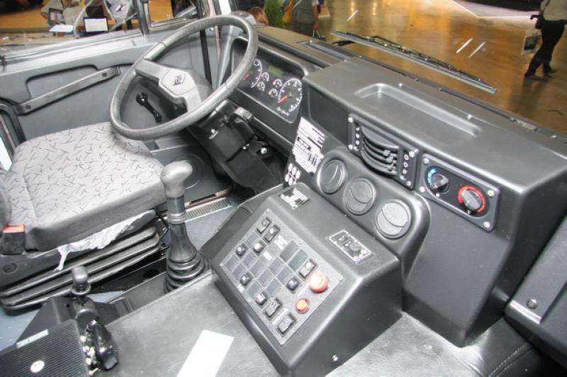 Мы уже сообщали, что Миасский автозавод собирается возобновить производство бескапотных грузовиков «Урал». Представленный на выставке самосвал — один из них. Он оснащён современной откидной кабиной от грузовика Iveco Turbotech, отличающейся высоким уровнем комфорта и улучшенной шумо- и виброизоляцией.