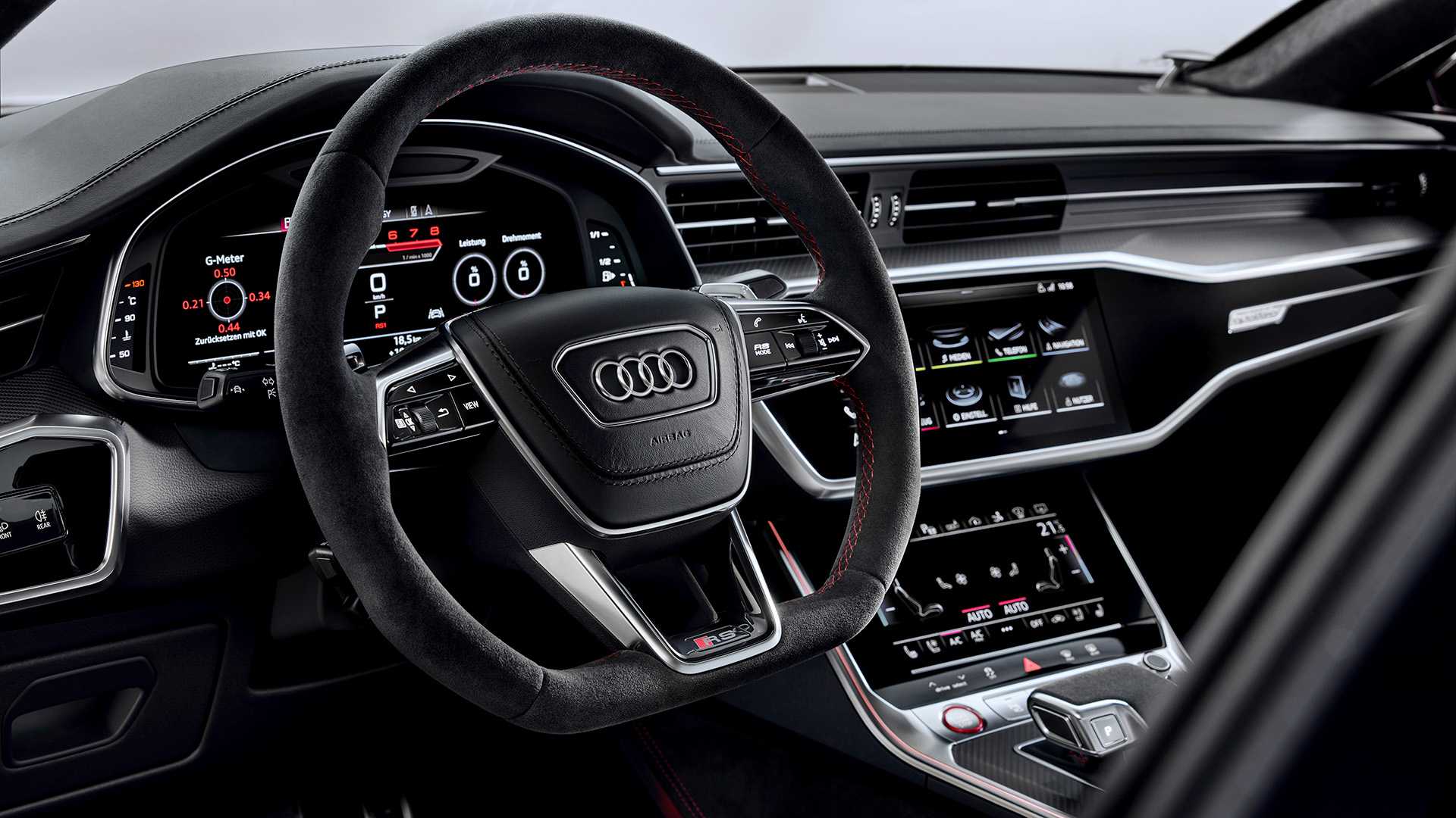 Кроме того, Audi RS7 Sportback получил адаптивную пневмоподвеску с функцией Dynamic Ride Control. Она уменьшает крены кузова при поворотах, а также понижает клиренс на 10 мм при скорости выше 120 км/ч. Но, в случае необходимости, она также может добавить к стандартному клиренсу 20 мм.