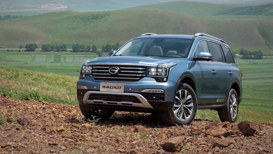 3-рядный 7-местный GAC GS8 имеет следующие габариты: длина — 4 836 мм, ширина — 1 910 мм, высота — 1 770 мм, база — 2 800 мм. Под его капотом расположился 4-цилиндровый турбированный бензомотор объёмом в 2 л. и мощностью в 190 л. с.