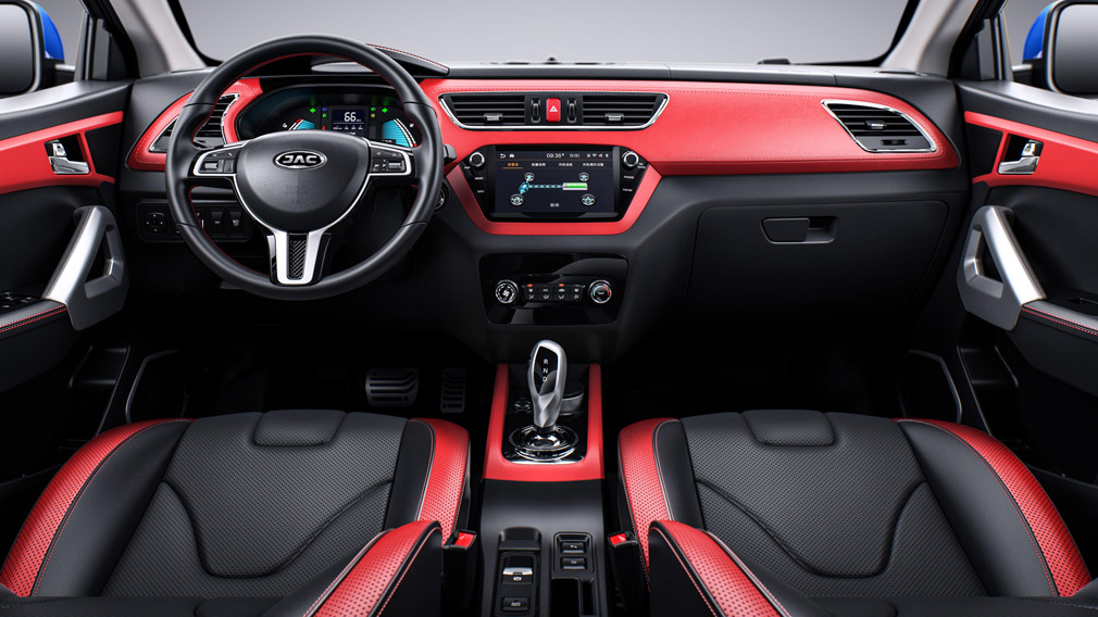 Габариты JAC iEV7S: длина — 4 135 мм, ширина — 1 750 мм, высота — 1 565 мм. Переднеприводный электрокроссовер оснащается двигателем мощностью в 92 кВт и аккумуляторной батареей ёмкостью в 43 или 50 кВт/ч. Запас хода на полной зарядке — 320 или 400 км соответственно.