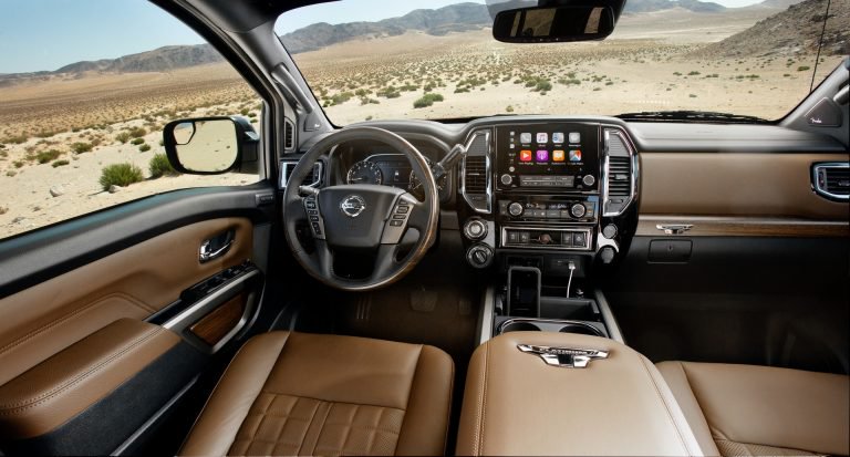Под капотом Nissan Titan располагается улучшенный бензиновый V8 объёмом в 5,6 л. Он развивает мощность в 400 л. с. (+10 л. с.) и крутящий момент в 559 Нм (+26 Нм). Трансмиссия - 9-диапазонный «автомат» и полный привод.