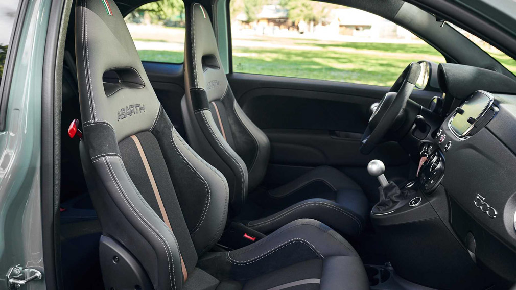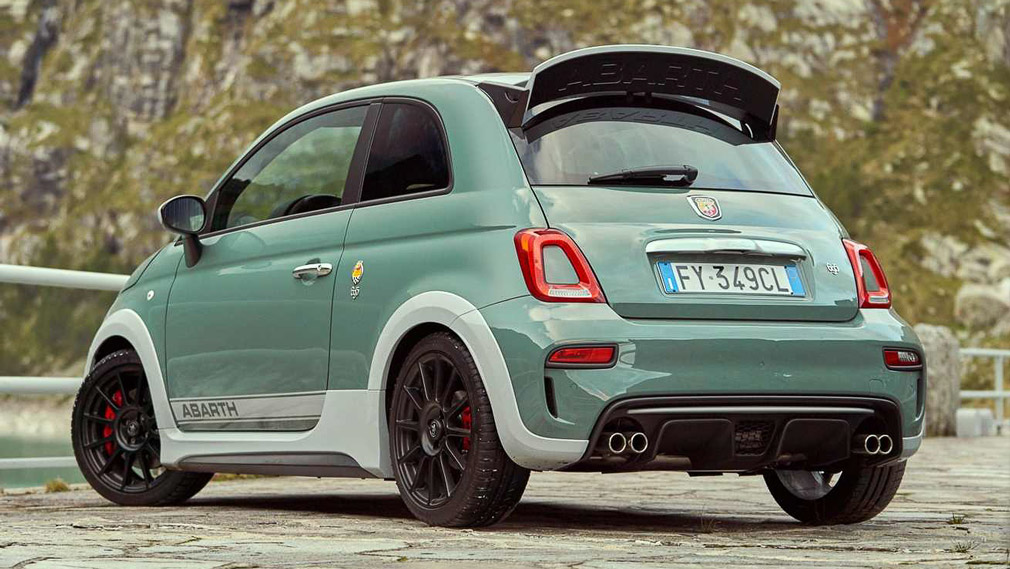 Все FIAT 500 Abarth 695 70° Anniversario будут окрашены в зелёный цвет со светло-серыми вставками. Их оснастят 17-дюймовыми колёсами, гоночными спойлерами и мощными тормозами Brembo с красными суппортами.