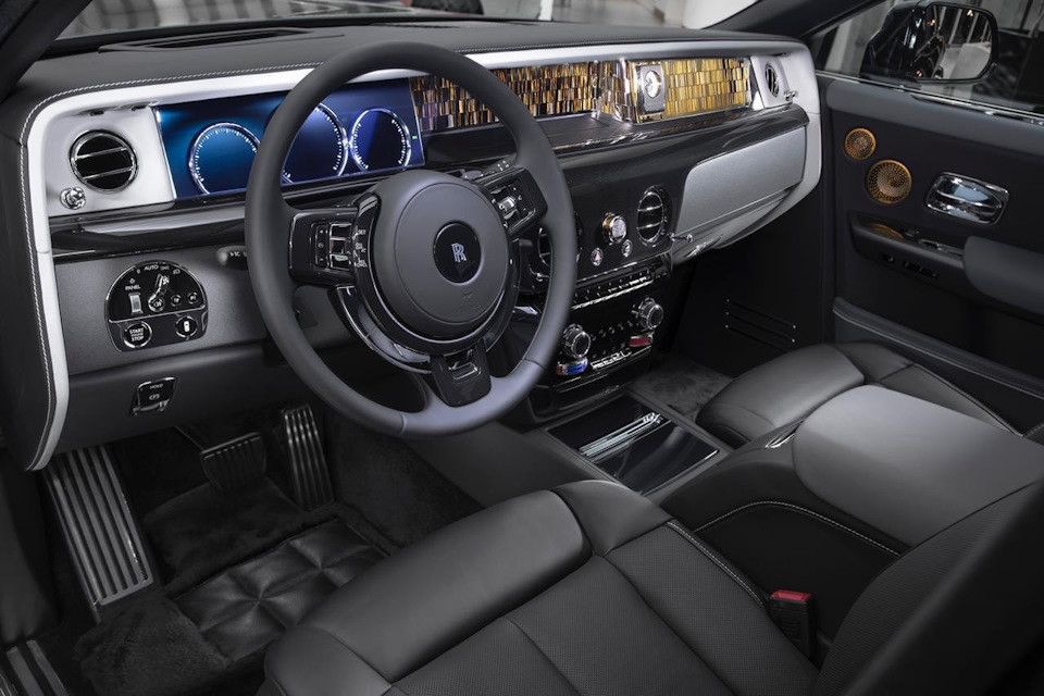 При изготовлении панели использовались полированная нержавеющая сталь и 24-каратное золото. Обшивка салона сделана по мотивам светлой и тёмной сторон Луны из белой кожи оттенка Arctic White и серой Selby Grey.