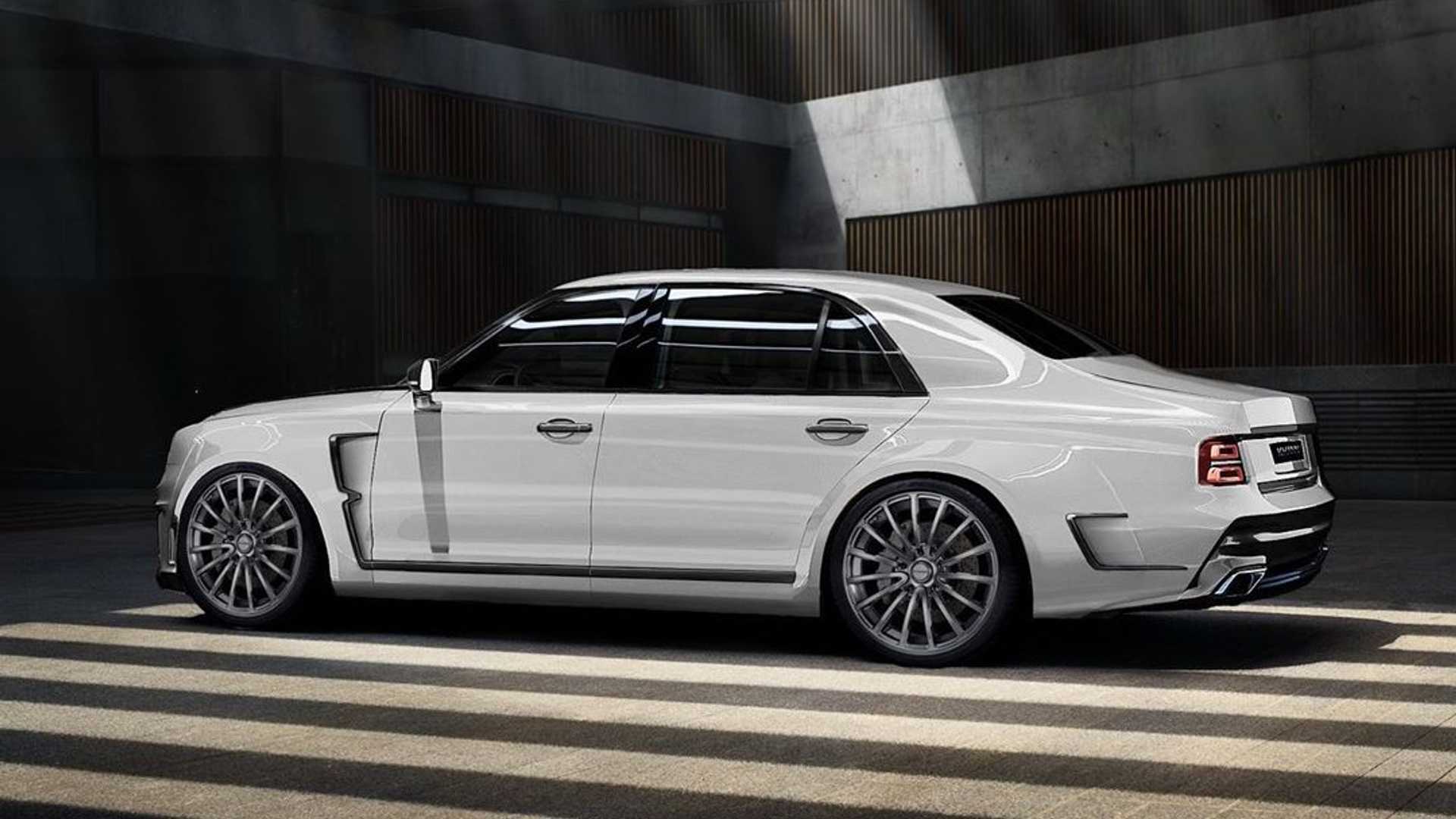 Специалисты из ателье Khann разработали спортивный обвес для российского седана Aurus Senat S600. На рендере можно увидеть, как изменился стандартный "Аурус Сенат". Скажем, теперь это автомобиль с двухцветным капотом, а также черной сетчатой решеткой радиатора.