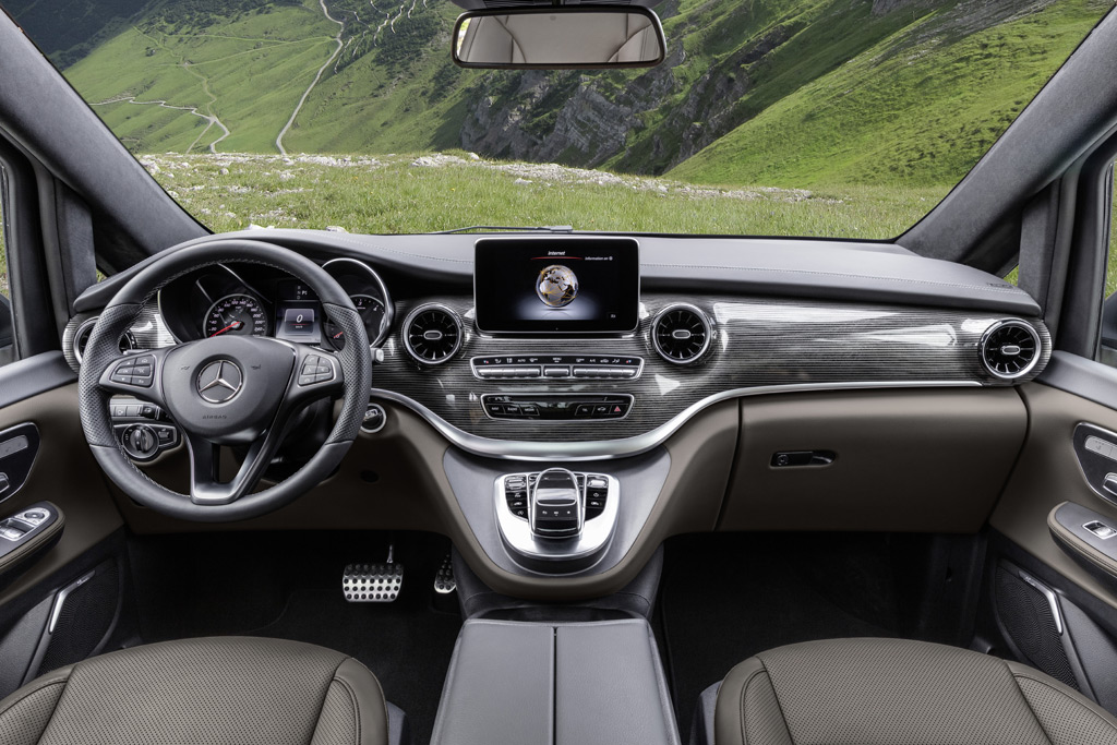 Внешне новый Mercedes-Benz V-Klasse Elite отличается от прочих минивэнов семейства новыми фарами, бамперами и решёткой радиатора. В салоне появились новые «приборка» и тачскрин мультимедийной системы, а также вентиляционные дефлекторы, оформленные в стиле премиальных легковых авто Mercedes-Benz.