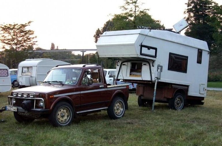 На рубеже 80-90-х годов литовская фирма Auviga планировала превратить "Ниву" в полноценный дорожный кемпер. Конструкция казалась очень интересной - эдакий "трансформер". Идея была в том, что жилой модуль крепился к шасси автомобиля при помощи болтов. Его можно было снять и поставить отдельно, "освободив" сам автомобиль.