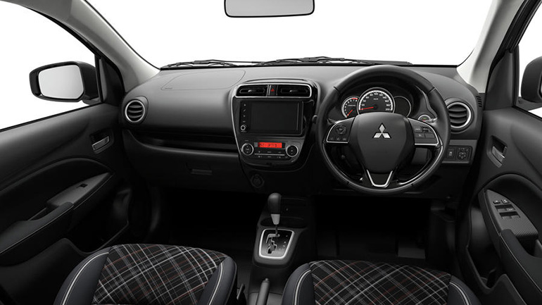В салоне Mitsubishi Mirage появились обшивка из искусственной кожи, а также современная мультимедийная система с 7-дюймовым тачскрином и поддержкой Apple CarPlay и Android Auto.