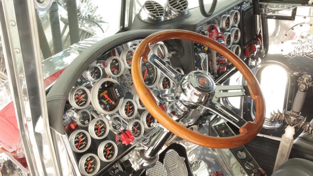 Убранство кабины THOR 24 напоминает какой-нибудь звездолёт из фантастического боевика. Приборная панель, например, состоит из 24 шкал — кроме обычных спидометра, тахометра, а также указателей температуры мотора и уровня топлива, там установлены датчики работы компрессоров, системы NOS и контроля давления в шинах.