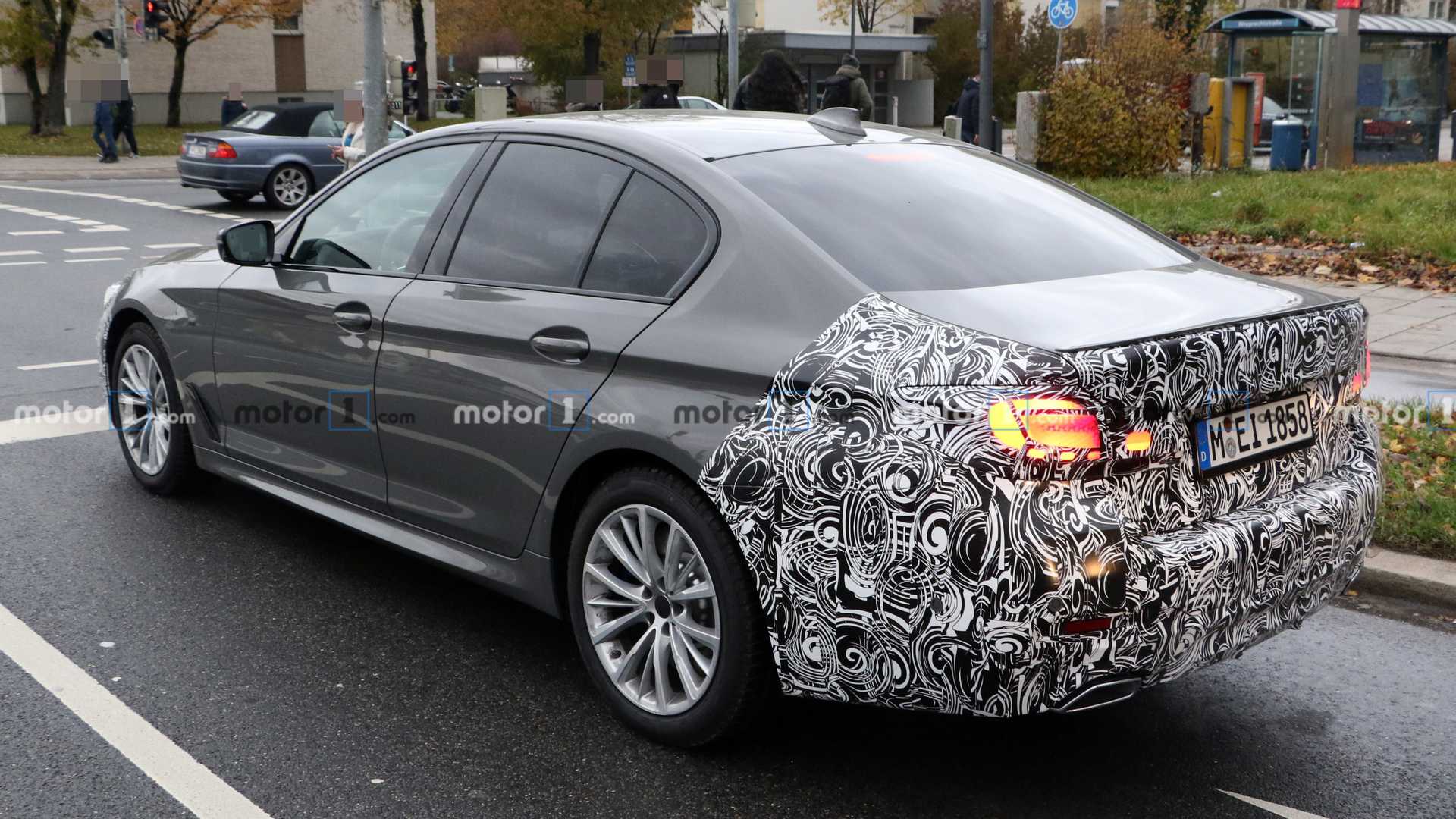Фары новых баварских «пятёрок» замаскированы — они явно будут совершенно новыми. На это намекает и изменённый дизайн светодиодных ДХО, которые, кстати, немного похожи на те, что стоят на Audi TT.
