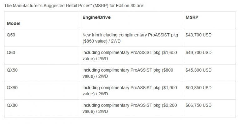 Цены на все Infiniti 30th Aniversary Edition уже опубликовал зарубежный автомобильный портал carscoops.com: