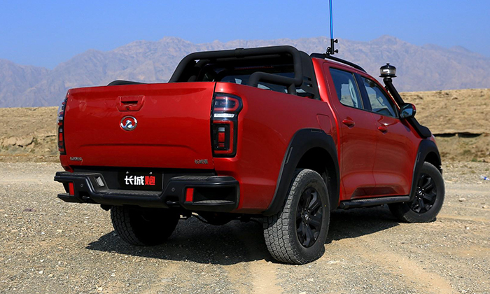Габариты Great Wall Pao Offroad: длина — 5 602 мм, ширина — 1 934 мм, высота — 1 886 мм. Под капотом расположен 2-литровый турбированный бензомотор мощностью в 190 л. с., работающий в паре с 8-диапазонной АКПП. Привод — полный, с подключаемым передним мостом.