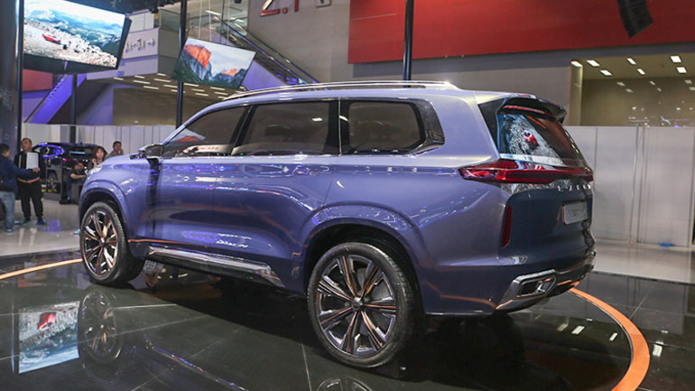 Этот 7-местный автомобиль отличается просто монументальным дизайном. Особенно массивной получилась его передняя часть — в основном, благодаря огромной решётке радиатора. Интересна и конструкция фар — они сделаны заострёнными к наружным краям, и заходят на передние крылья. Это делает кроссовер визуально шире.