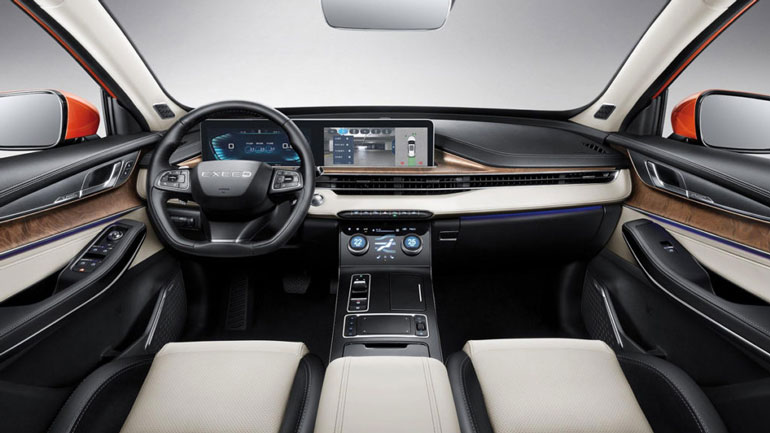 В оснащение Exeed VX вошли цифровая «приборка», продолжением которой стал большой тачскрин мультимедийной системы, а также убирающиеся ручки дверей.