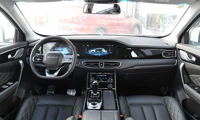 В оснащение Jetour X95 входят: виртуальная «приборка», визуально объединённая с тачскрином мультимедийной системы в стиле нового Mercedes-Benz GLE, а также отдельный тачскрин для управления климат-контролем. Салон может вмещать 5, 6 или 7 человек.