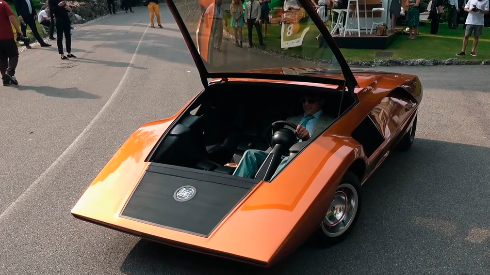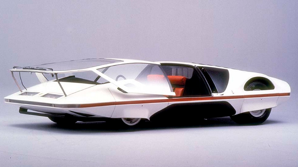 Этот концепт компания Lancia представила еще в 1970 году. Дверей как таковых здесь вообще нет: это уж скорей люк, а точней - открывающаяся даже не крыша, а лобовое стекло. Соответственно здесь нет привычных дверных проёмов и ручек, а садиться в салон тоже надо необычным способом - с учетом низкой посадки надо буквально перешагивать борт автомобиля.